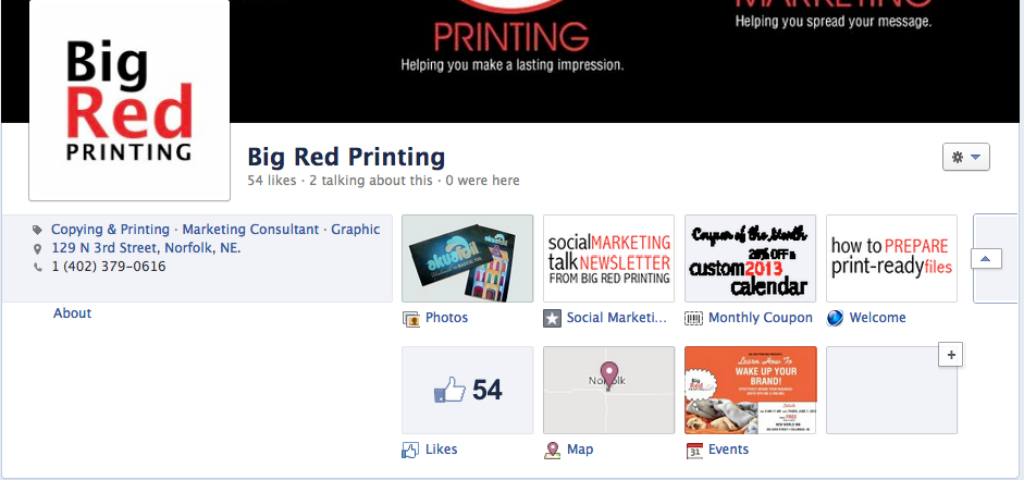 Has your business explored the world of adding apps to your Facebook Page yet? If not, you might be missing out on some great marketing exposure as well as customer engagement! At Big Red Printing, we currently have 2 custom apps added to our website, one where we post this newsletter and the other where we post our monthly coupon.